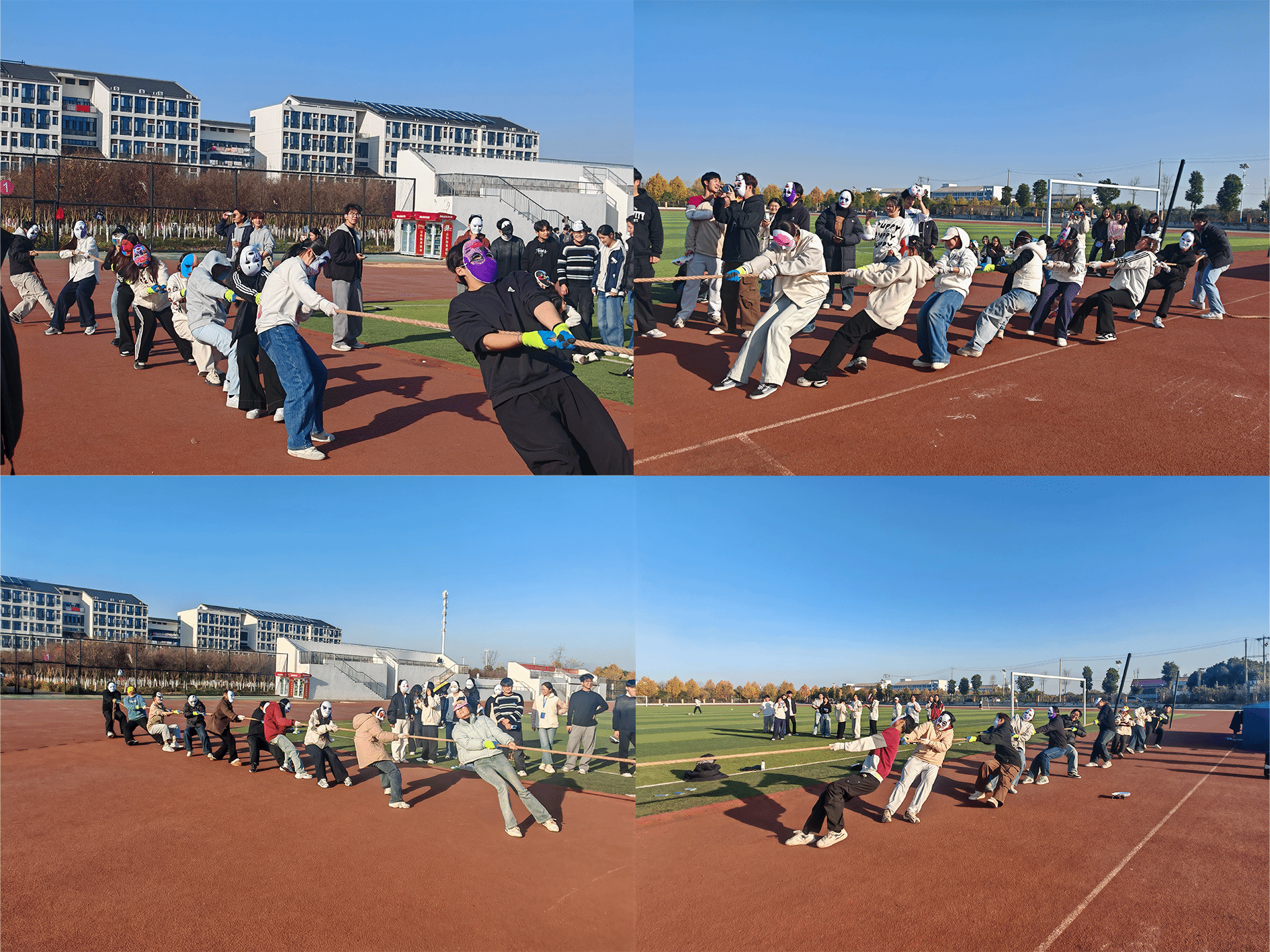 循环赛结束后,晋级的班级趁热打铁展开交叉对抗赛,2025级网络与新媒体2班代表队重心后压、稳扎稳打,阳光下的面具色彩格外鲜明,最终以默契的配合迅速拉过红绸,拿下比赛冠军;2024级网络与新媒体2班代表队面对对手的强劲攻势,顶住压力,在对局中逆转节奏,最终积蓄力量胜出,锁定比赛亚军。