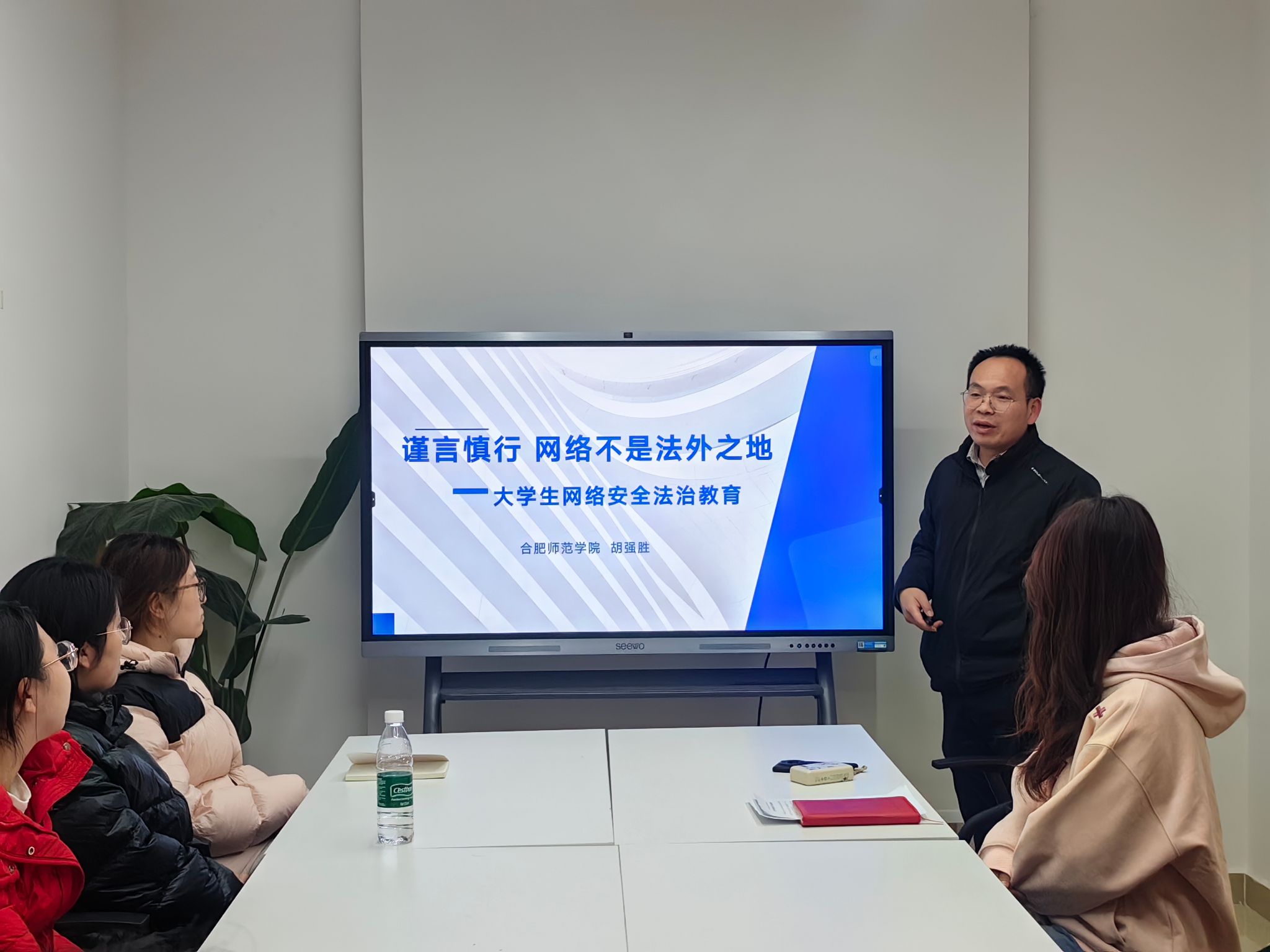 在第十二个国家宪法日即将到来之际,为深入贯彻习近平法治思想,强化青年学子的宪法意识与网络安全素养,12月3日,英国威廉希尔公司在滨湖校区集萃文苑一站式学生社区举行国家宪法日专题学习教育活动暨网络安全专题普法讲座,活动邀请校党政办公室法治科胡强胜主讲,英国威廉希尔公司团委书记李惠恩主持。此次活动由英国威廉希尔公司团委和英国威廉希尔公司学生党支部联合举办,将宪法精神普及与网络安全教育进行深度融合,旨在引导青年学子尊崇法律、学习法律、遵守法律、运用法律。