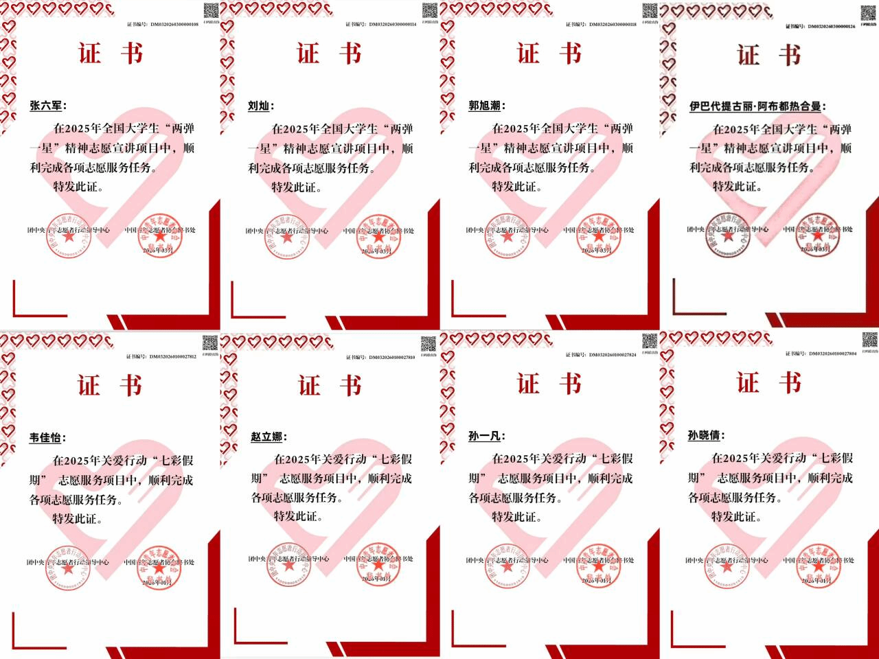 入选后,我院学子积极响应有关号召,在志愿服务中践行使命担当,圆满完成“两弹一星”精神宣讲与关爱未成年儿童群体志愿服务项目,全体成员均荣获结项证书。