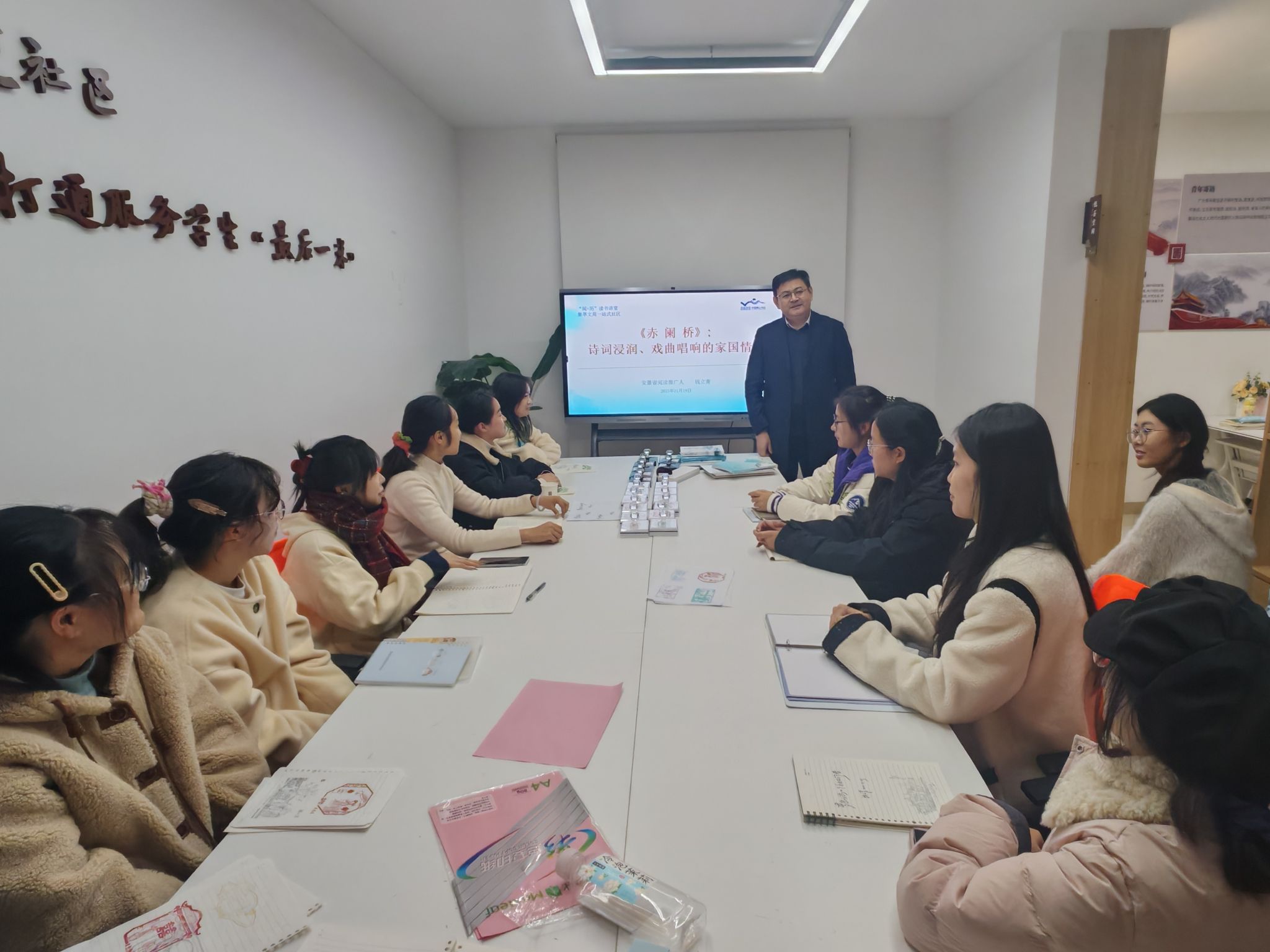 11月19日,“阅+历”读书讲堂走进英国威廉希尔公司“集萃文苑”一站式社区“书香”活动月,江淮文化名家、安徽省十佳阅读推广人、教务处处长钱立青教授在集萃文苑以“《赤阑桥》:诗词浸润中的家国情怀”为题,为同学们呈现了一场融学术性、艺术性与体验性于一体的专题讲座。讲座以“赤阑桥”为叙事主线,通过集章、讲演、对谈等环节,层层展开一段跨越古今的文化旅程。